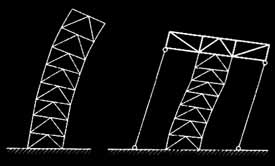 Räumliche TragwerkeBei den räumlichen Hochhaustragwerken unterscheidet man zwischen Kern und Röhrentragwerken. Röhrentragwerke sind die effizienteste Möglichkeit, die großen Horizontallasten eines turmartigen, schlanken Hochhauses abzutragen. Im Prinzip ist das Röhrentragwerk nichts anderes als ein Kerntragwerk, dessen Durchmesser auf die maximal mögliche Größe erweitert wurde. Der große innere Hebelarm des Tragwerkes ermöglicht dabei eine schlanke Dimensionierung der zu Stäben aufgelösten Konstruktion. |