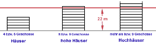 Geschossen schon als Hochhäuser bezeichnet, da ab dieser