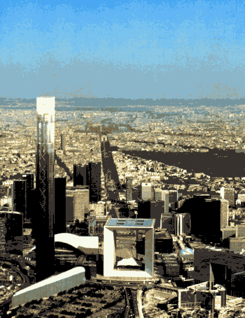 1989 wurde ein Wettbewerb für ein ungewöhnliches Grundstück auf dem "Triangle de la Folie", jenseits des "Grande Arche de la Defense" ausgeschrieben, an dessen Rande sich eine Ringstraße und eine regionale Eisenbahnline kreuzen.
